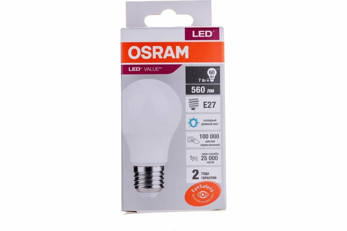 Ниже Вы можете прочитать отзывы на Лампочка светодиодная OSRAM LED Value Е27 6500К груша 7Вт 560Лм 4058075578791 (комплект из 10 шт), ознакомится с подробными характеристиками, посмотреть интересные обзоры и фотографии на Лампочка светодиодная OSRAM LED Value Е27 6500К груша 7Вт 560Лм 4058075578791 (комплект из 10 шт).