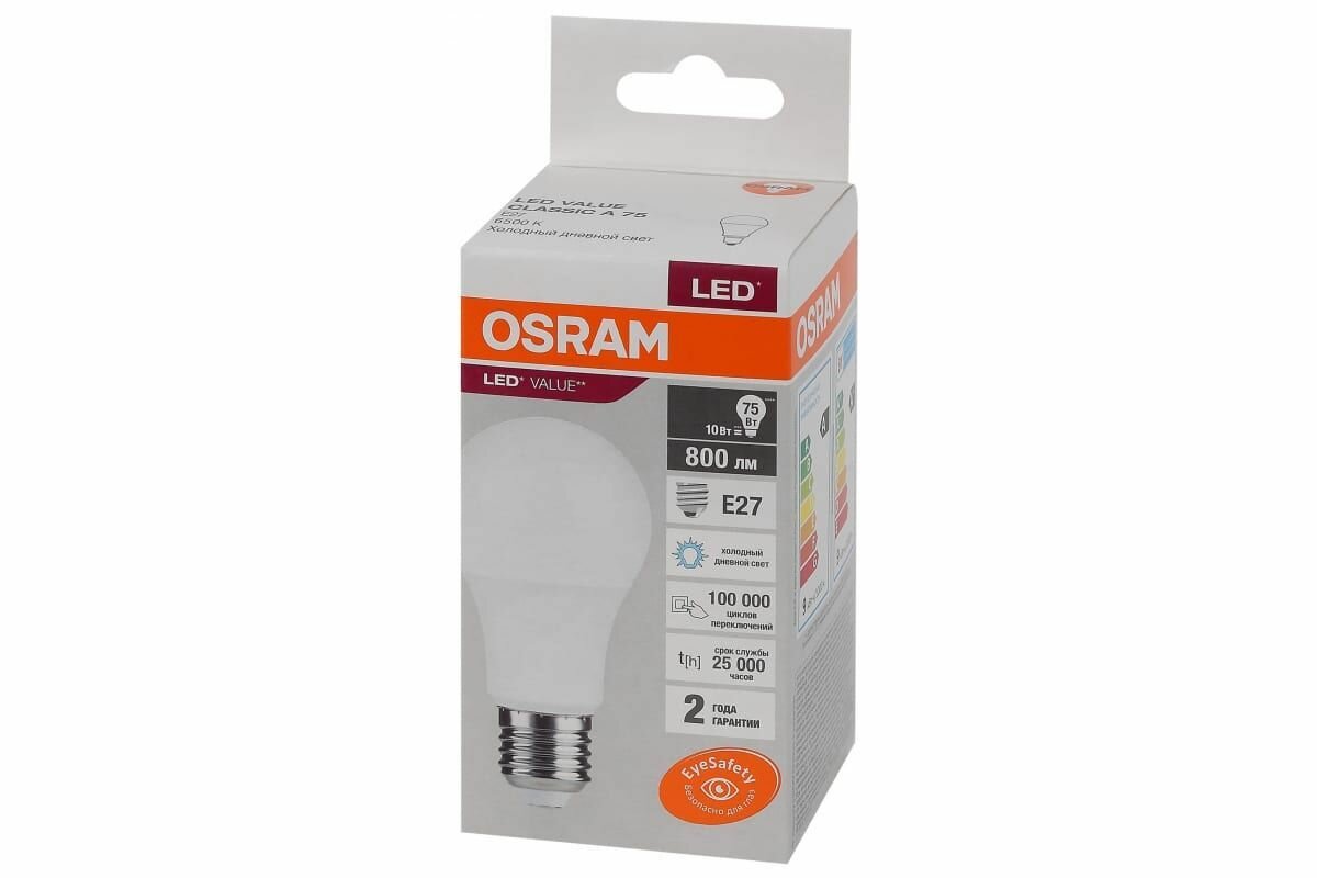 Купить Лампочка светодиодная OSRAM LED Value Е27 6500К груша 10Вт 800Лм 4058075578913 (комплект из 5 шт)