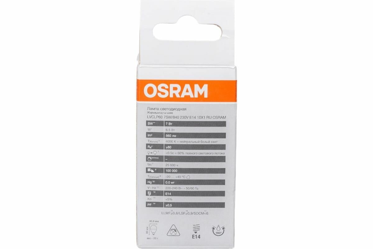 Купить Лампочка светодиодная Osram FR LED Value LED-P60 7w/840 E14 4000K (комплект 10шт.) 4058075579651