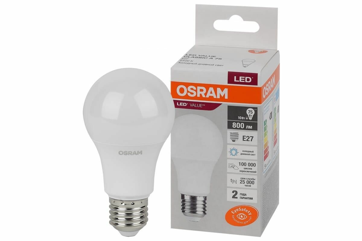 Купить Лампочка светодиодная OSRAM LED Value Е27 6500К груша 10Вт 800Лм 4058075578913 (комплект из 10 шт)