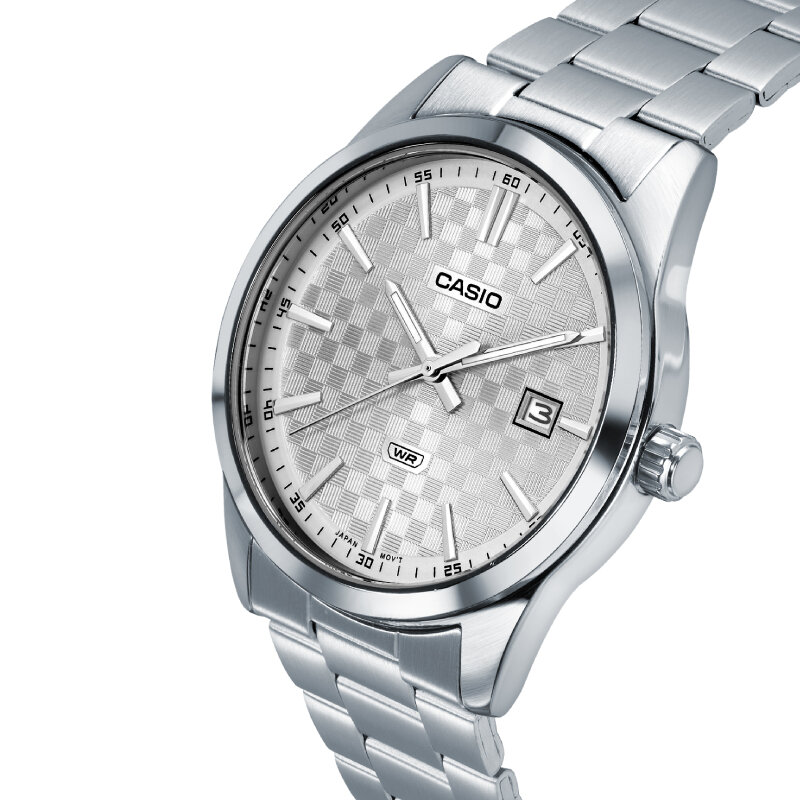 MTP-VD03D-3A1 Casio наручные часы кварцевые WR30 (3 атм) мужские серебряный отображение числа подсветка стрелок минеральное стекло