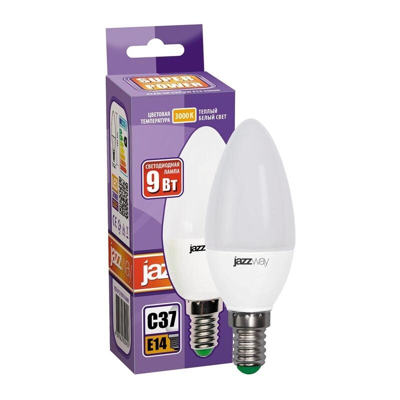 Лампа светодиодная PLED-SP C37 9w E14 3000K 230/50 2859457А Jazzway