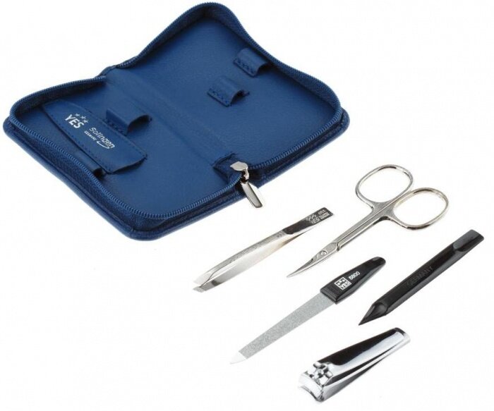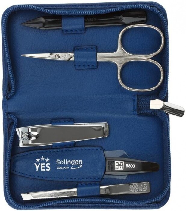 Купить Yes 9073 Маникюрный набор yes, 5 пр. футляр: натуральная кожа, цвет синий