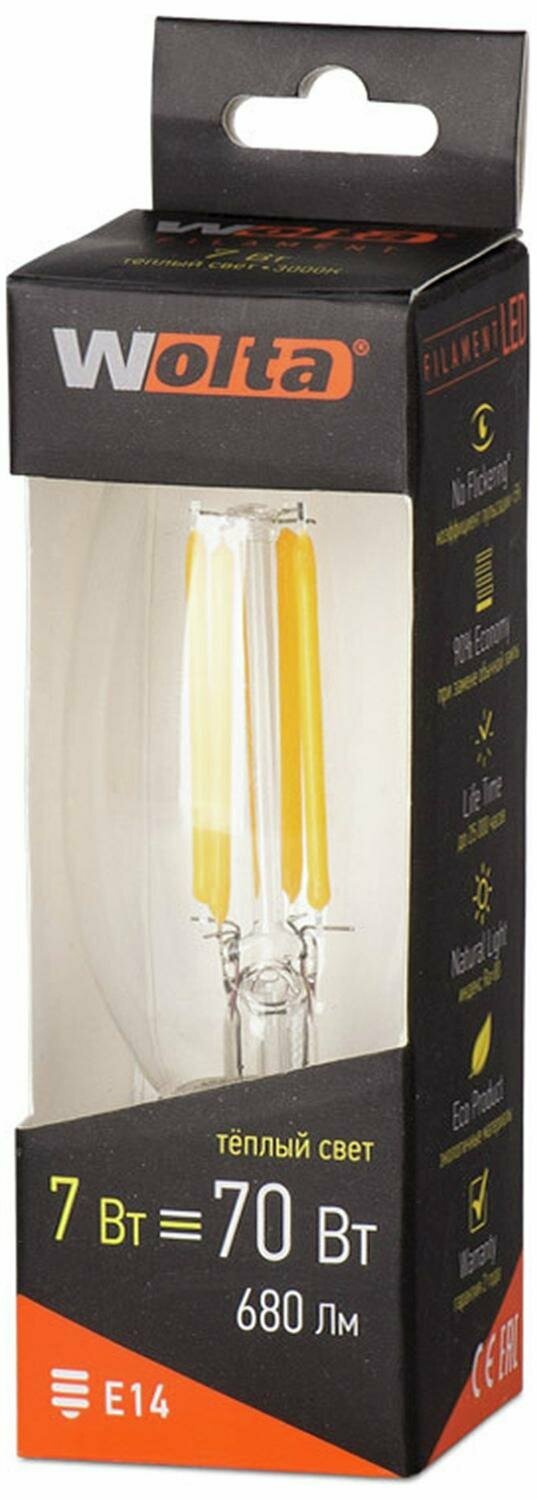 Светодиодная лампа Wolta FILAMENT E14 7 Вт филаментная 730 лм 3000 К свеча
