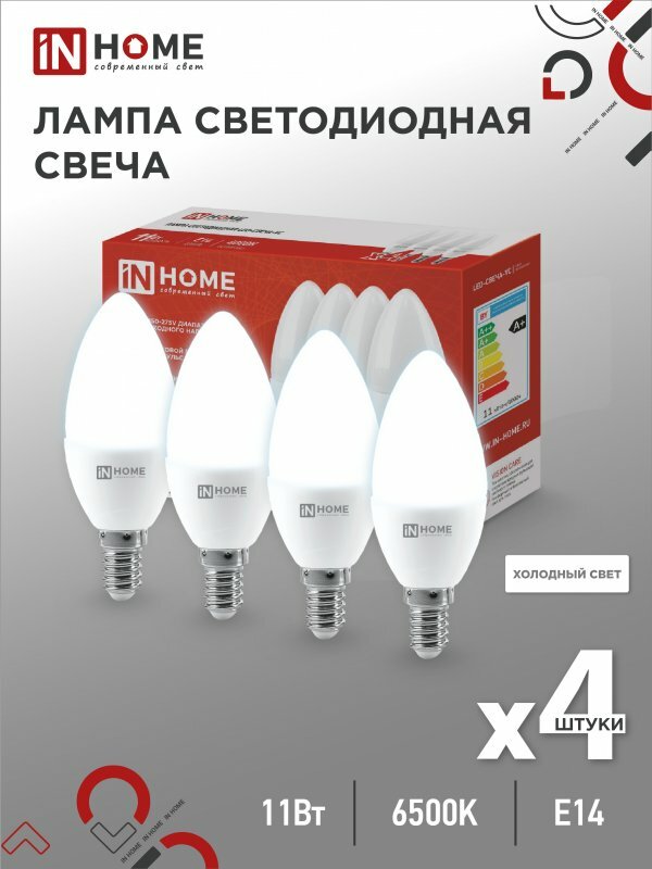 Купить IN HOME Лампа светодиодная LED-СВЕЧА-VC 4PACK 11Вт 230В Е14 6500К 1050Лм (4шт./упак) (арт. 4690612047805) 1шт.