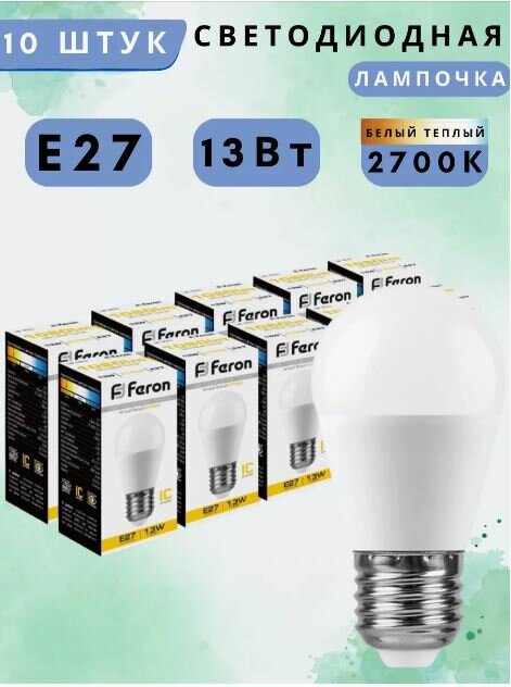 Лампа светодиодная LB-950 Шарик E27 13W 2700K, FERON 38104 (1 шт.)