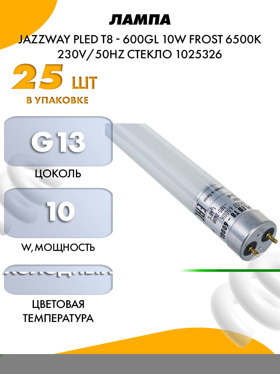 Купить Jazzway Лампа PLED T8 - 600GL 10w FROST 6500K 230V/50Hz стекло 1025326