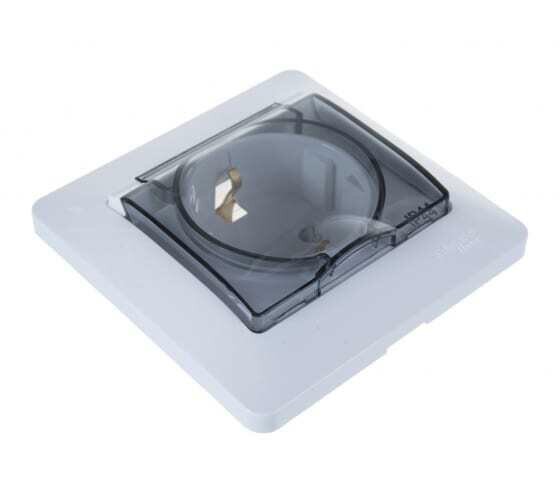 Розетка с заземлением, со шторками (с крышкой) IP44, белая, Schneider Electric Glossa