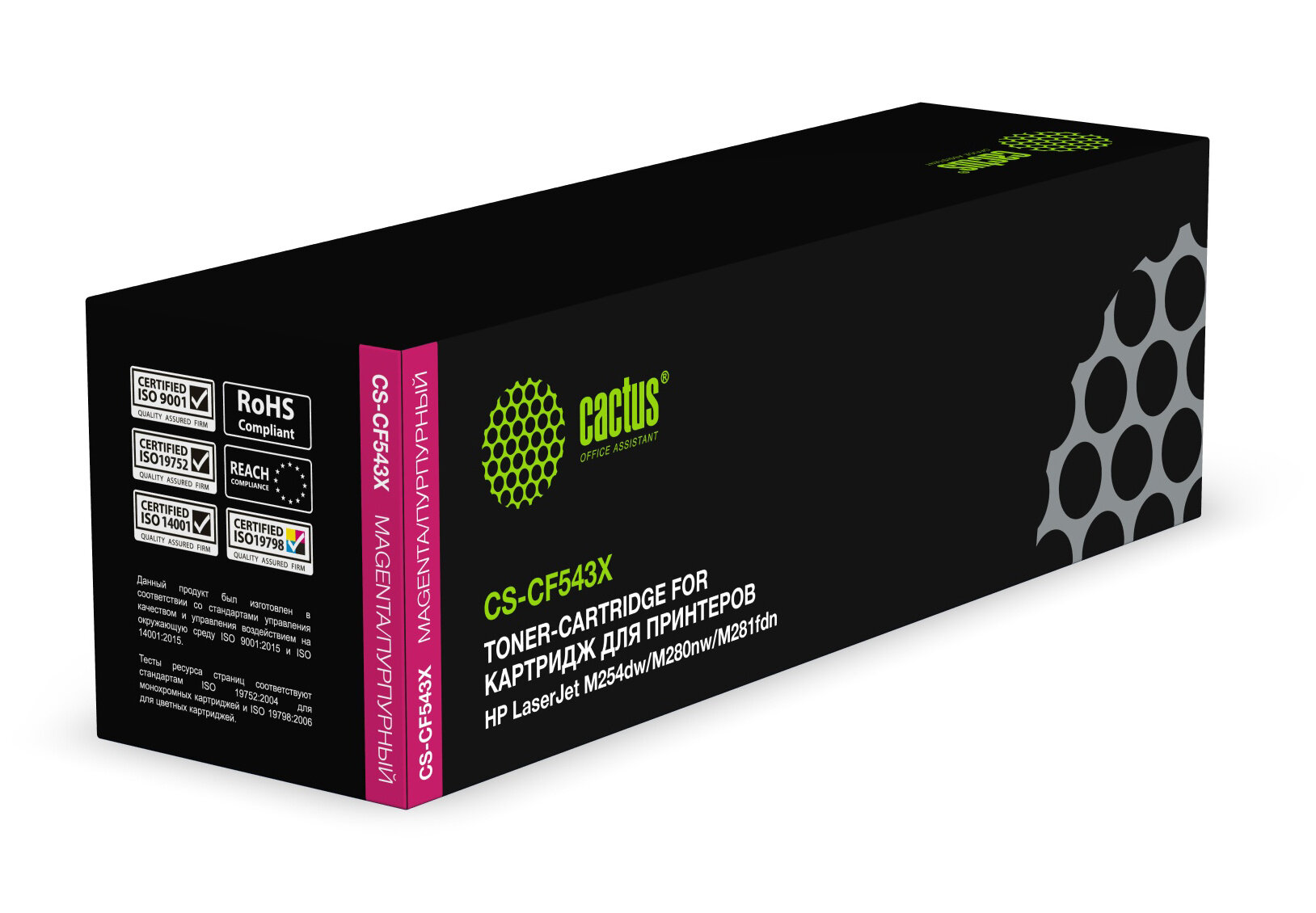Картридж Cactus CS-CF543X CF543X пурпурный, для HP LJ M254dw/M280nw/M281fdn, ресурс до 2500 страниц