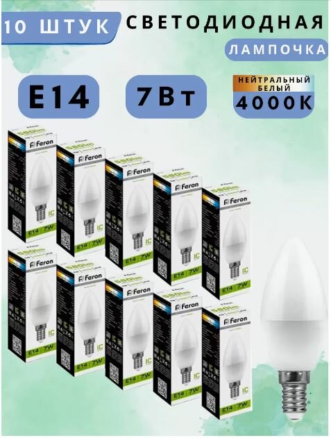 Лампа светодиодная E14 Feron Свеча, 7Вт, 4000К, лампочка 1 шт. 25476