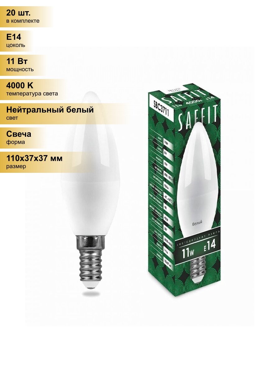 Купить (20 шт.) Светодиодная лампочка Saffit свеча C37 E14 11W(905lm) 4000K 4K матовая, пластик 100x37 SBC3711 55133 Нейтральный белый. Цоколь E14