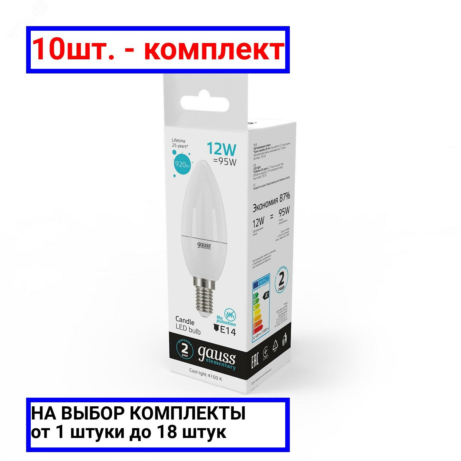 Лампа светодиодная Gauss Elementary 12Вт цок.:E14 свеча 220B 4100K св.свеч.бел.нейт. C37 (упак.:10шт) (33122)