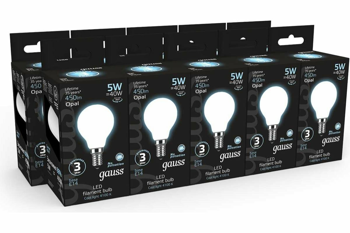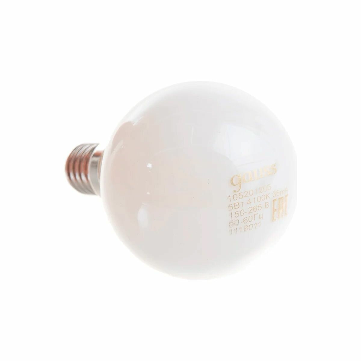 Лампа светодиодная LED 5 Вт 450 Лм 4100К белая Е14 Шар milky Filament Gauss () GAUSS 105201205 (1 шт.)