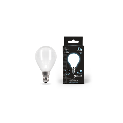 Купить Лампа светодиод. (LED) Шар Е14 филамент. 5Вт 450лм 4100К 230В опал Gauss