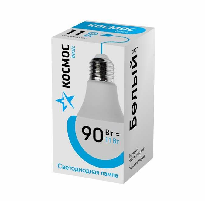 Купить Лампа Космос "Экономик", светодиодная, 11W, E27, 4500К, нейтральная белая, стеклянная колба