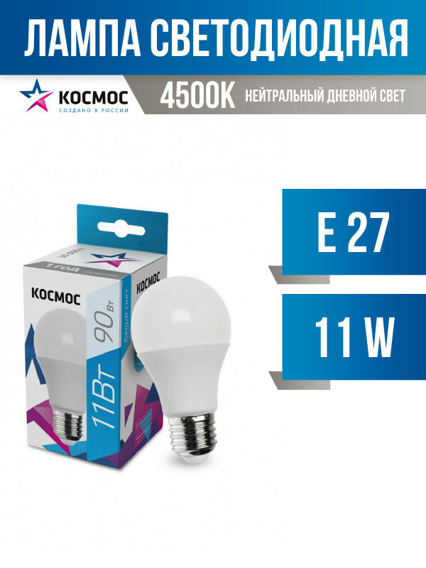 Светодиодная лампа Космос, 11 Вт, Е27, 4500 K, груша, LED11wA60E2745, нейтральный белый