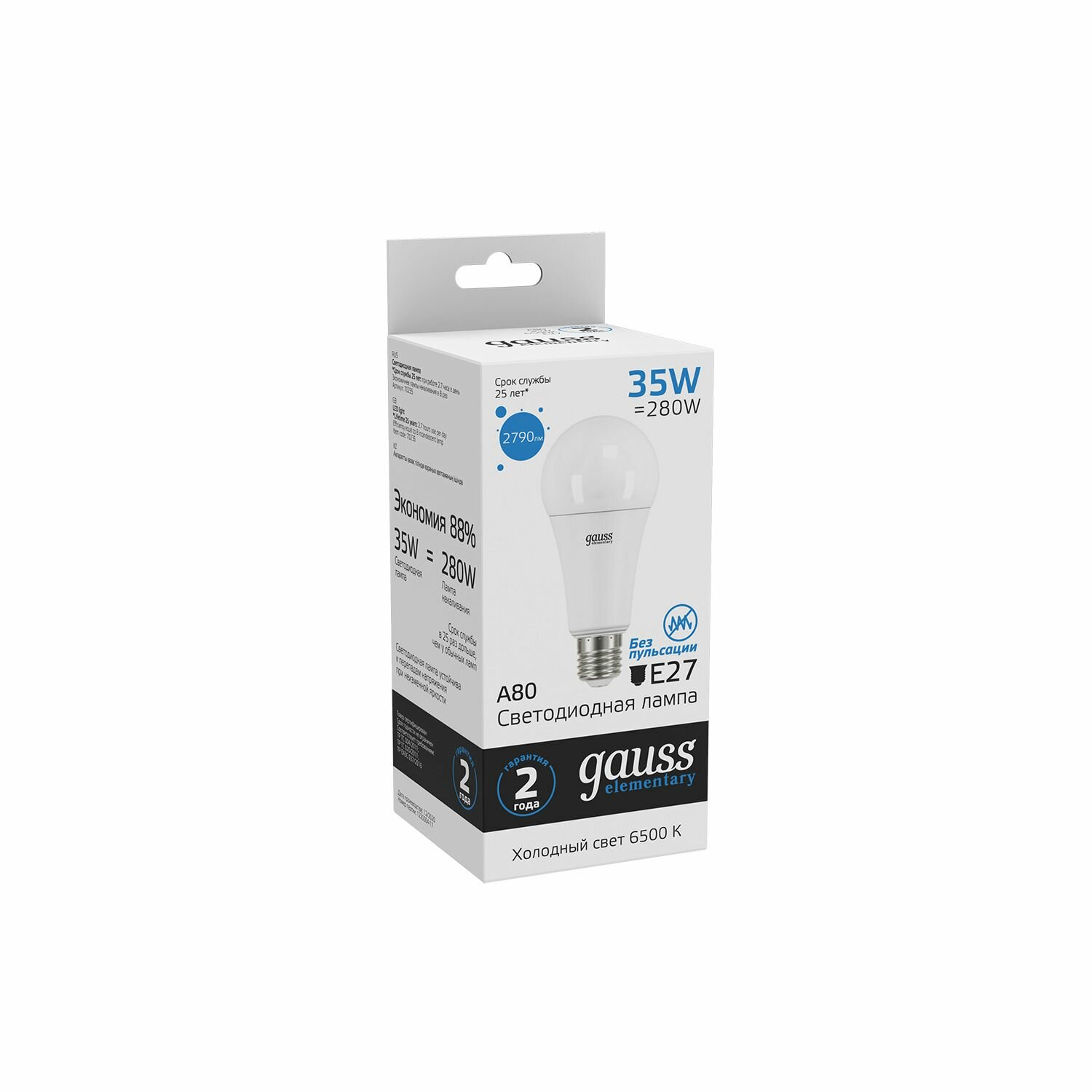 (10 шт)Лампа Gauss Elementary A70 35W 2790lm 6500K E27 LED