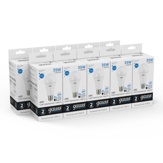 Лампочка светодиодная E27 A70 35W 2790lm 6500K УПАКОВКА 10 шт. Gauss Elementary