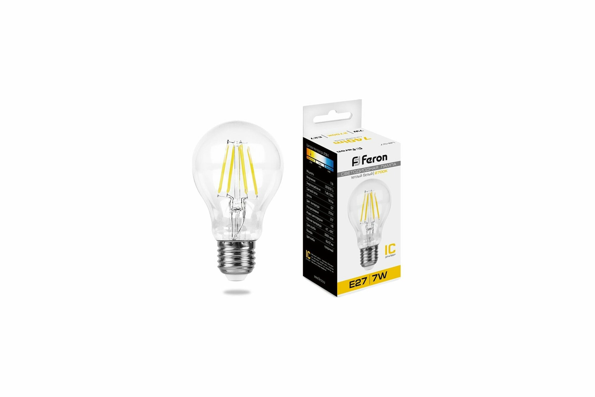 Лампа светодиодная LED 7вт Е27 белый FILAMENT 25570 FERON