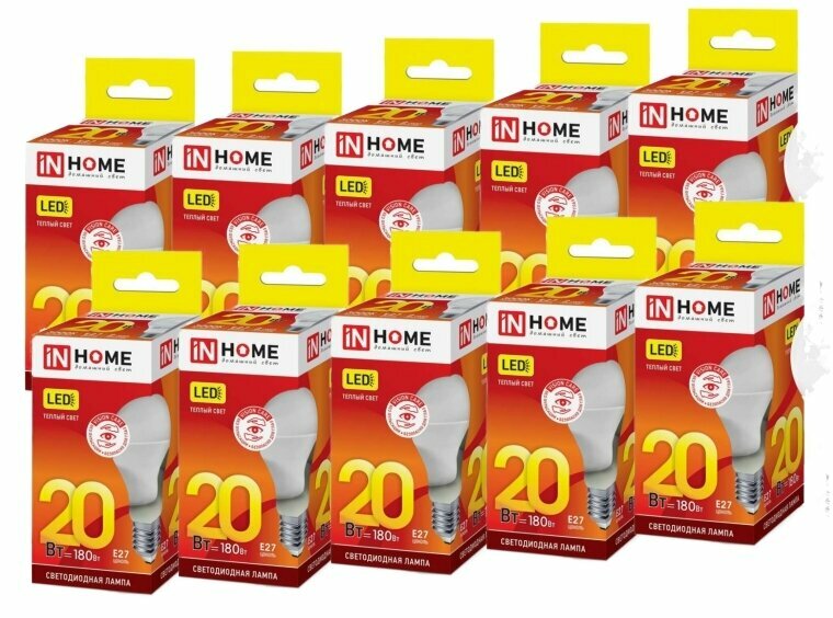 Ниже Вы можете прочитать отзывы на Лампа светодиодная IN HOME LED-A60-VC 20Вт 230В Е27 3000К 10 шт., ознакомится с подробными характеристиками, посмотреть интересные обзоры и фотографии на Лампа светодиодная IN HOME LED-A60-VC 20Вт 230В Е27 3000К 10 шт..