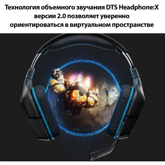 Гарнитура Logitech G432, накладные, черный / синий [981-000770]