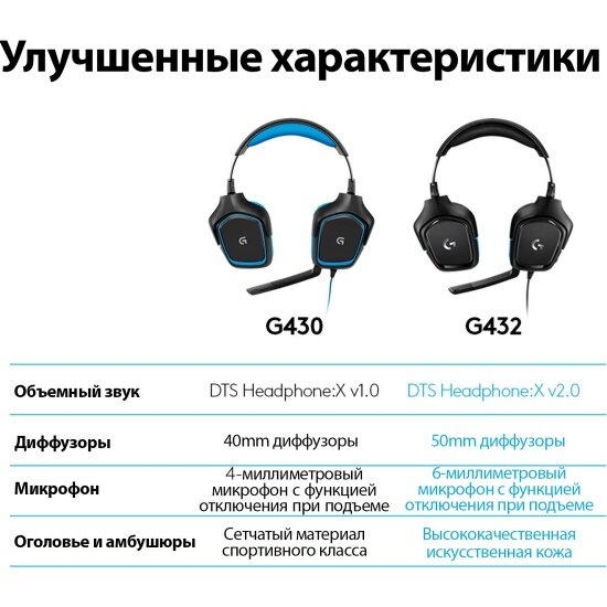 Гарнитура Logitech G432 Leatherette, черный/синий (981-000770)