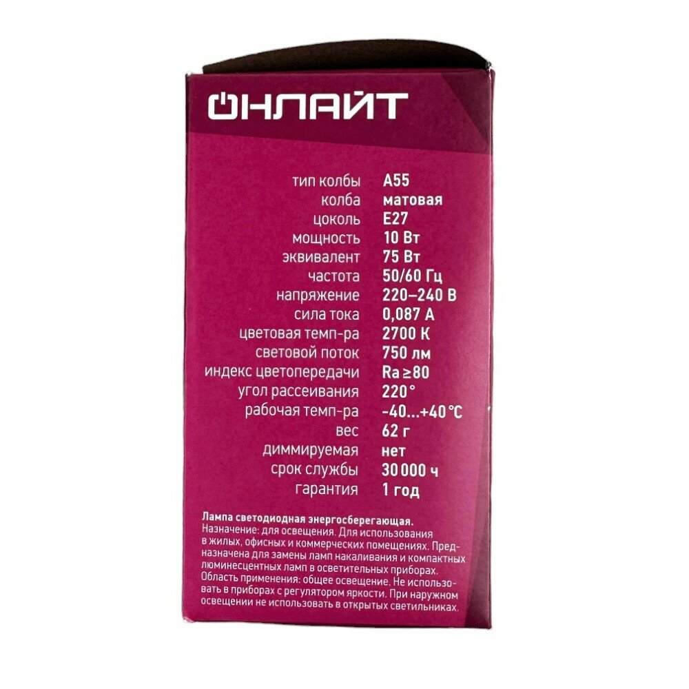 Ниже Вы можете прочитать отзывы на Онлайт ЛОН A60 E27 10W(750Lm) 2700K 2K 113x60 ОLL-A60-10-230-2.7K-E27 71649, ознакомится с подробными характеристиками, посмотреть интересные обзоры и фотографии на Онлайт ЛОН A60 E27 10W(750Lm) 2700K 2K 113x60 ОLL-A60-10-230-2.7K-E27 71649.
