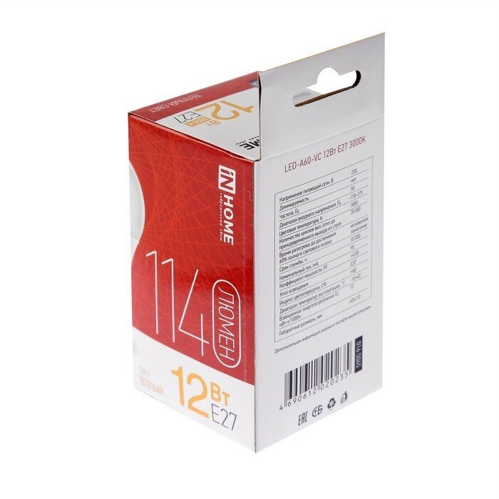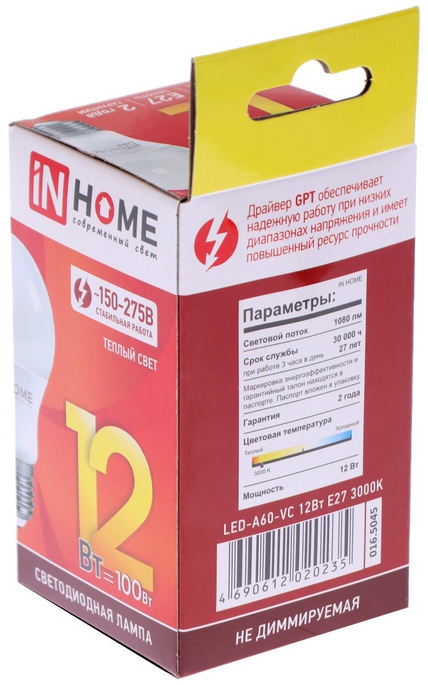 Купить IN HOME Лампа сд LED-A60-VC 12Вт 230В Е27 3000К 1140Лм 4690612020235