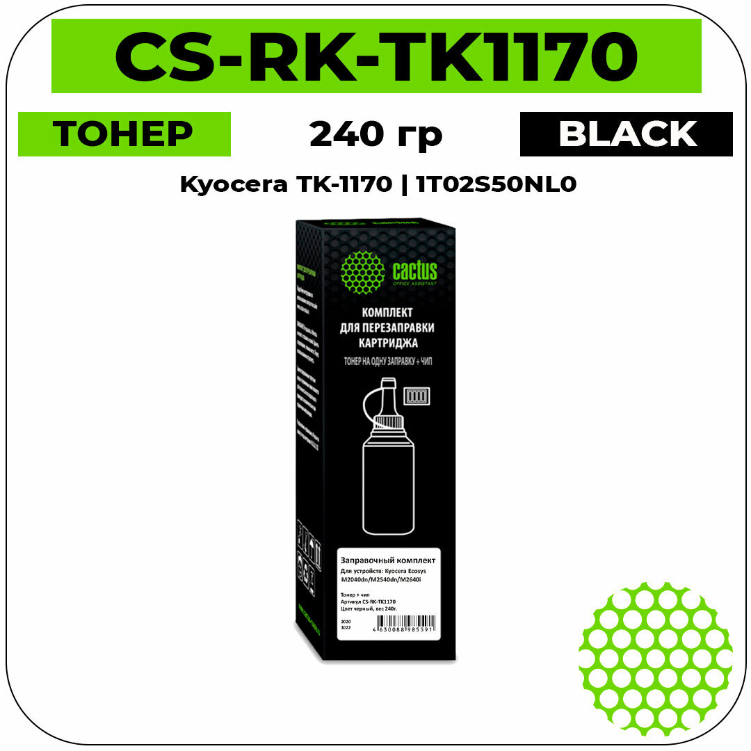 Купить Тонер Cactus CS-RK-TK1170 черный, флакон, в упаковке 1 x 240грамм, для принтера Kyocera Ecosys M2040dn/ M2540dn/M2640idw