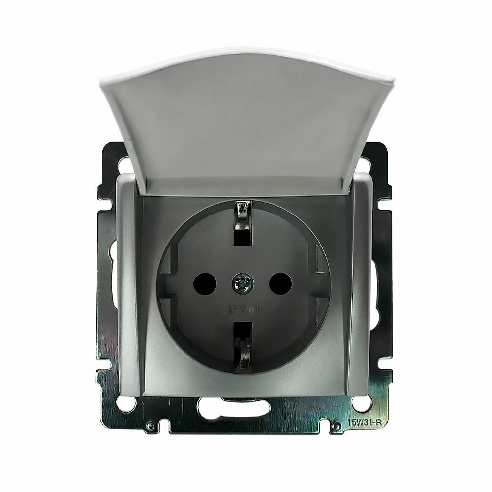 Купить Розетка с крышкой одинарная Алюминий Legrand Valena