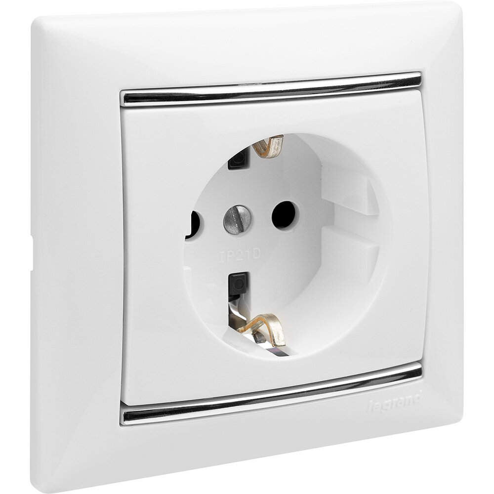 Розетка VALENA CLASSIC, скрытый монтаж, с заземлением, белый. 774420 Legrand