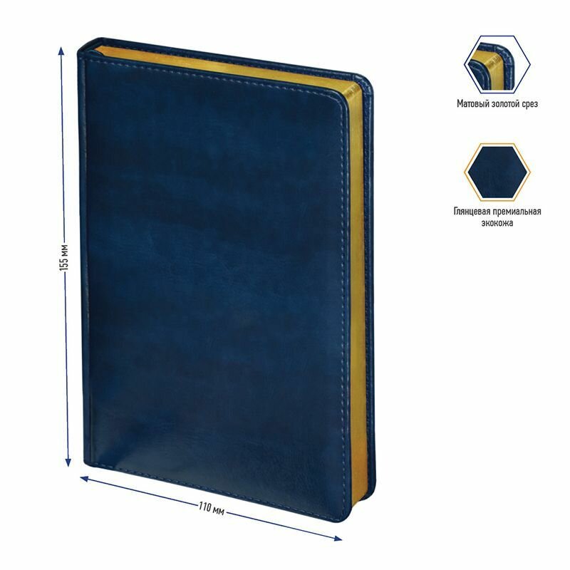 Ежедневник недатир. A6, 160л., кожзам, Berlingo "xGold", зол. срез, синий (арт. 276429)