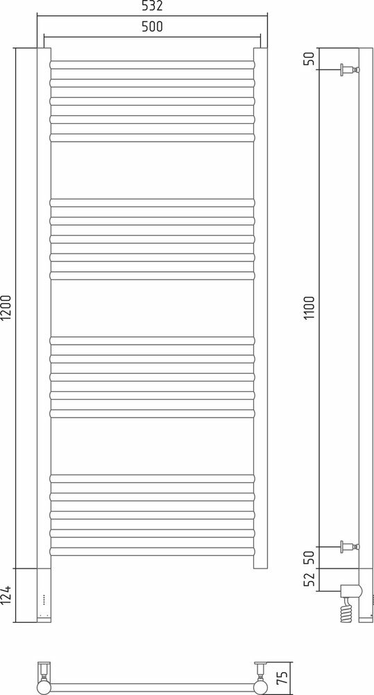 Полотенцесушитель электрический Сунержа Богема 3.0 прямая 1200х500 МЭМ левый Без покрытия
