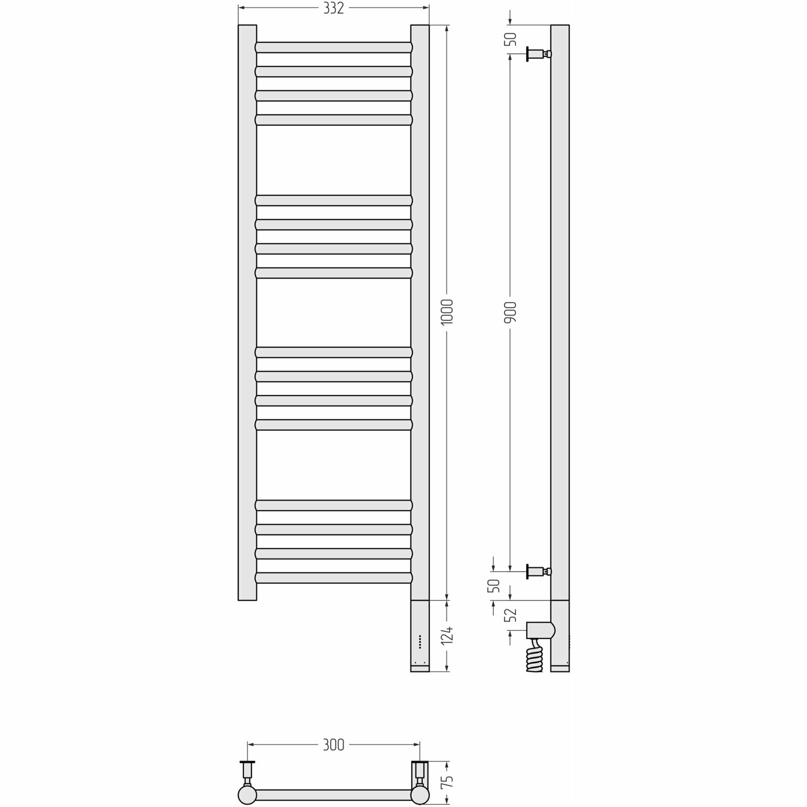 Полотенцесушитель электрический Сунержа Богема 3.0 прямая, 1000x300, МЭМ правый, матовый белый 30-5805-1030