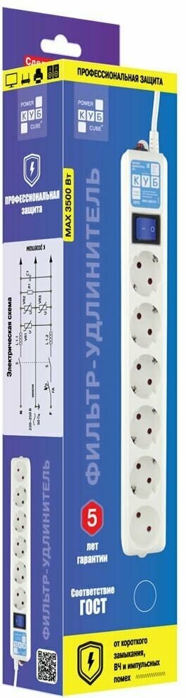 Сетевой фильтр Power Cube PowerCube PRO 5м 6 розеток 16А (белый)