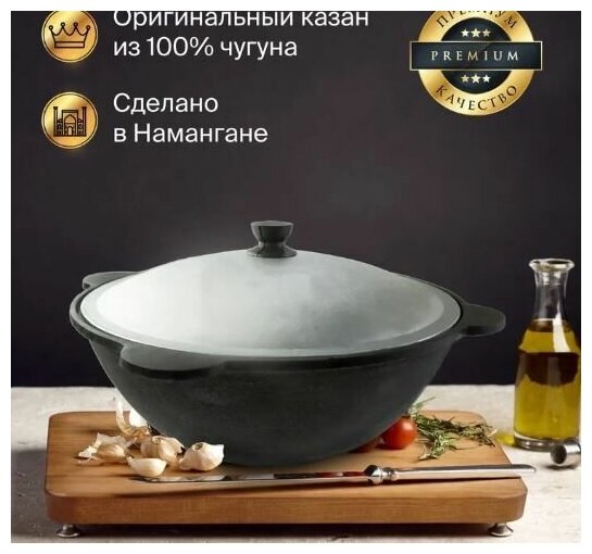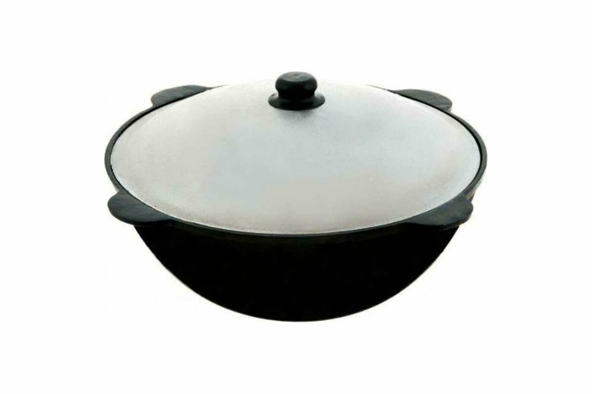 Узбекский чугунный казан (плоское дно) 4,5 л с крышкой Наманган