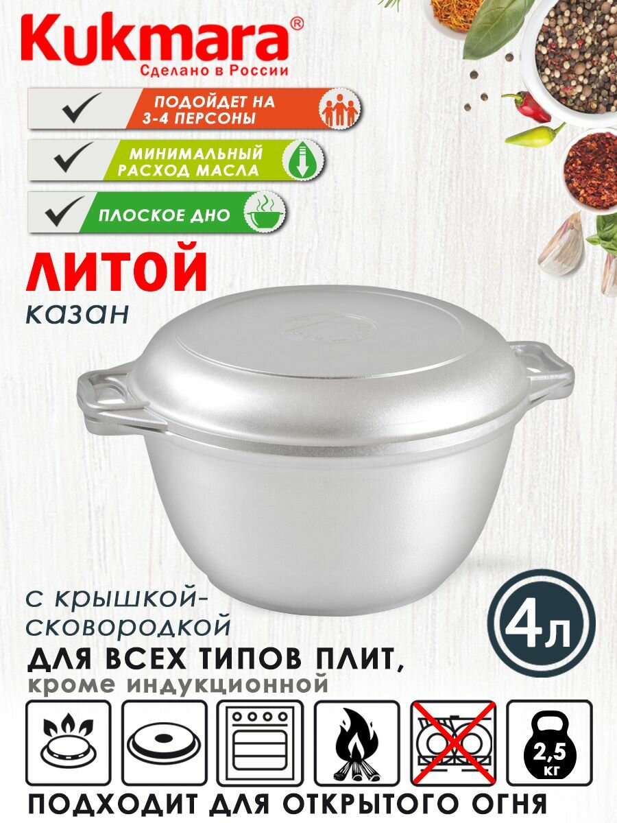 Казан Kukmara 4,0 л с крышкой-сковородой