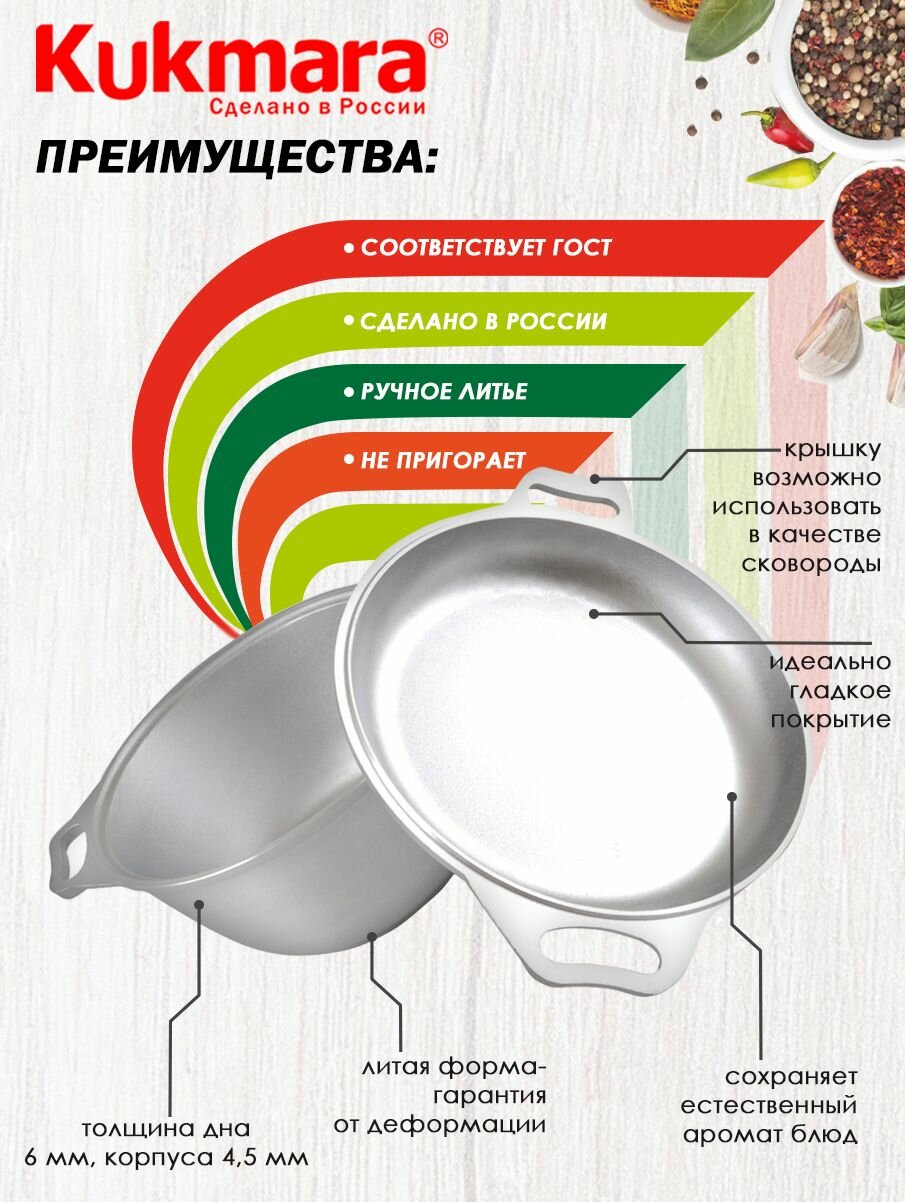 Казан KUKMARA, 3 л, крышка-сковорода, литые ручки