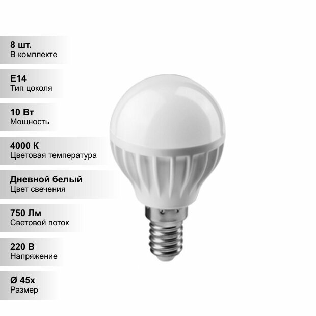 Сохранить(8 шт.) Светодиодная лампочка онлайт G45 10Вт 230В 4000K E14 интересное: