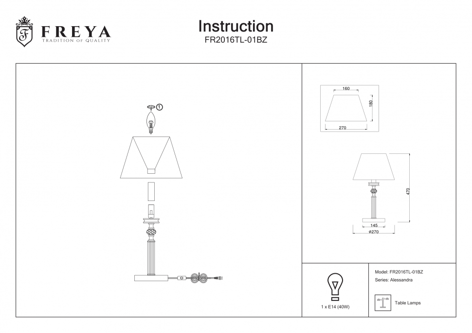 Купить Настольная лампа Freya Classic Alessandra FR2016TL-01BZ