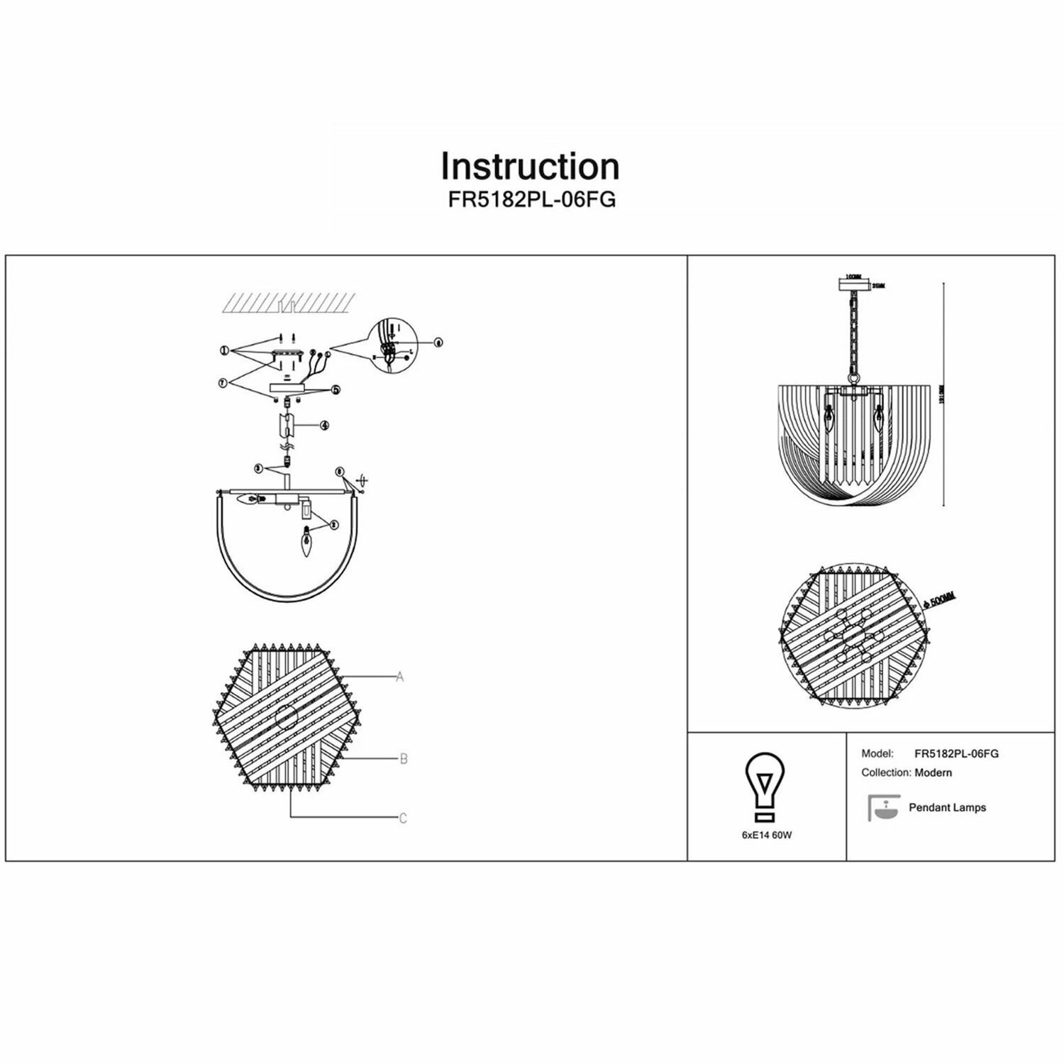 Светильник подвесной Freya Basilica, FR5166PL-06N, 240W, E14