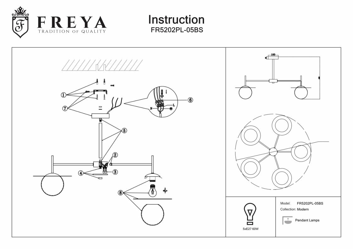 Подвесной светильник Freya FR1012PL-05BS