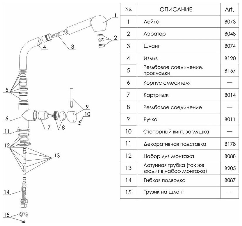 | Комплектация | Смеситель, подводка, крепеж, инструкция |