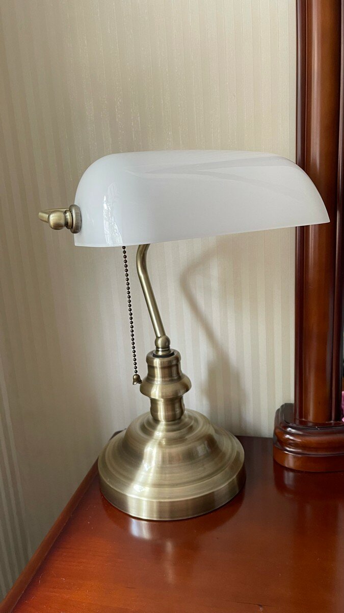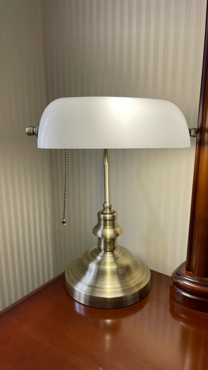Настольная лампа для чтения Arte Lamp BANKER, белое стекло, E27, 60 Вт