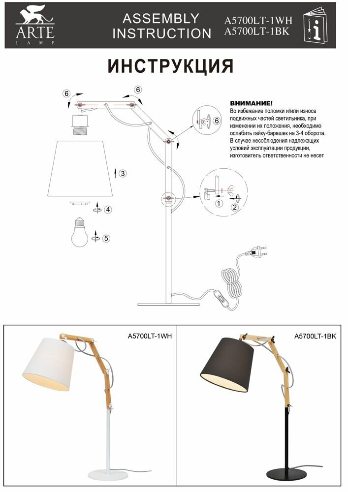 СохранитьДекоративная настольная лампа Arte Lamp A5700LT-1WH PINOCCHIO под лампу 1xE27 60W интересное: