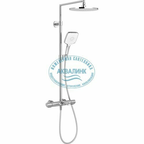 Душевая система Jacob Delafon Avid, арт. E97389RU-9-CP, 3 режима, 25 см, round, неповор. излив, термостат, верхний душ, с лейкой