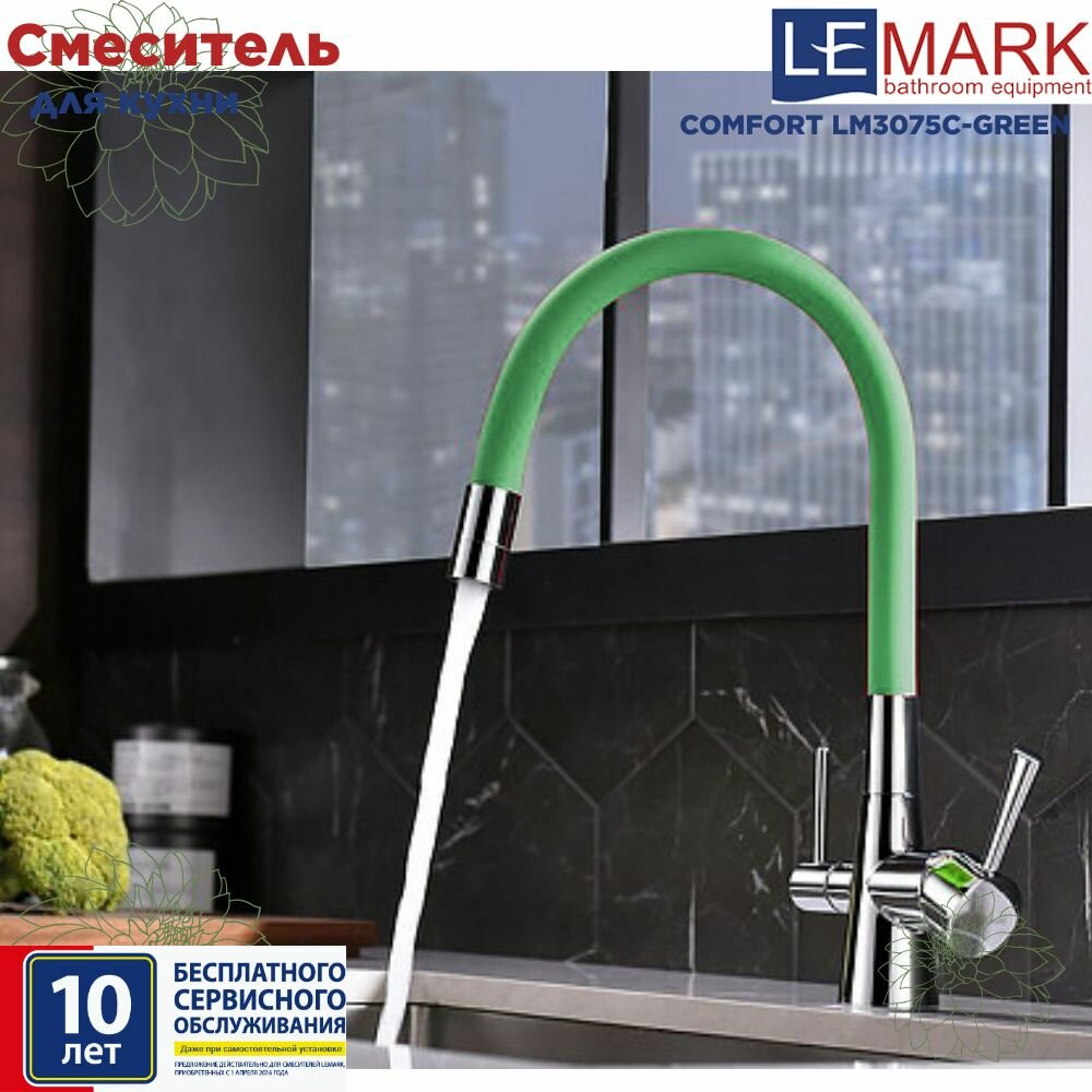 Смеситель для кухни Lemark Comfort LM3075C-Green с гибким изливом, хром, зеленый