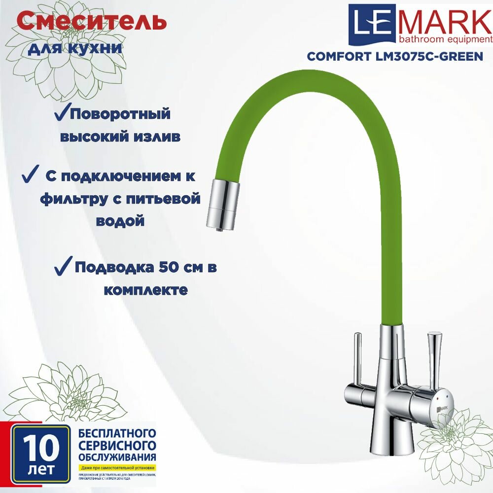 Купить Смеситель Lemark Comfort LM3075C-Green для кухни с подключ. к фильтру с питьевой водой, хром/зеленый