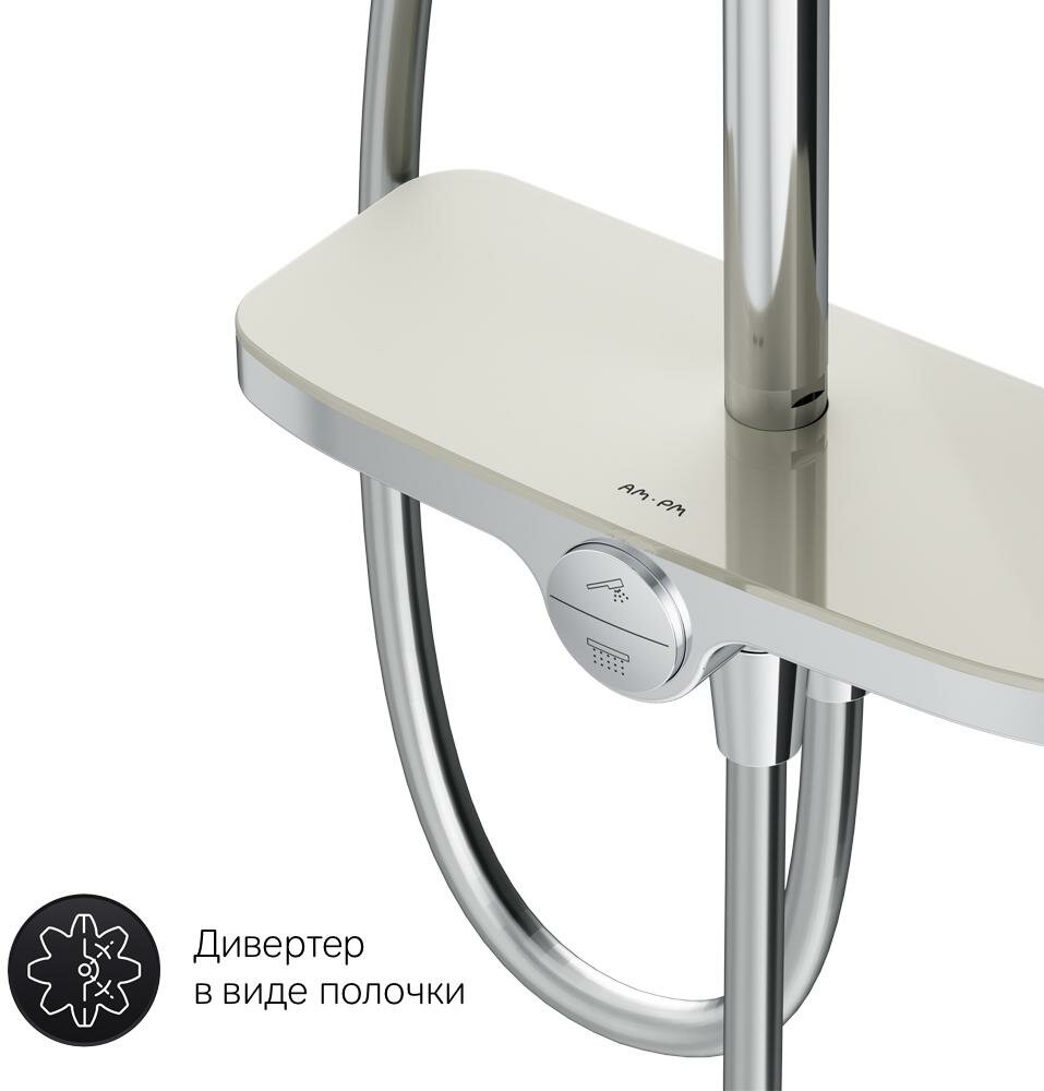 Купить Душевая система с тропическим душем и смесителем AM.PM Like F0780200 хром с полочкой для аксессуаров и интегрированной кнопкой переключения между тропическим и ручным душем, без излива, Германия