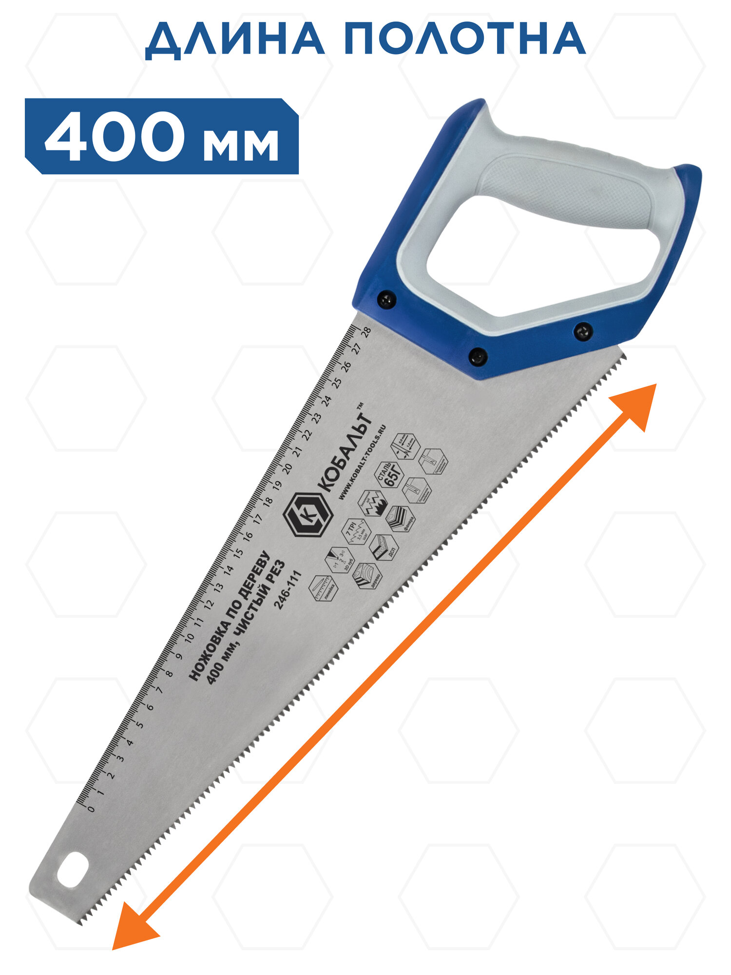 Ножовка по дереву 400 мм, шаг 3,5 мм 7 TPI, закаленный зуб, 3D-заточка 246-111, кобальт 246111 (1 шт.)